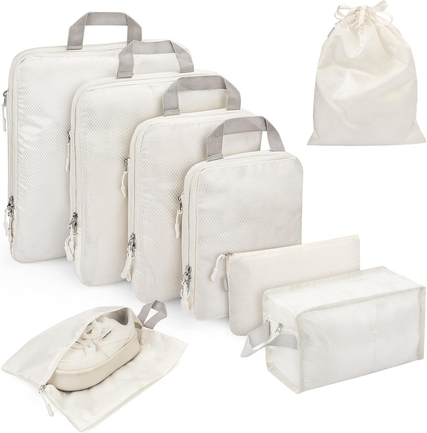 YOOFAN Packing Cubes – Suitcase and Luggage Organizer Set for Effortless Travel, Compressible Bags, Compression Cubes, Traveling Essentials (Beige, 8 Set)