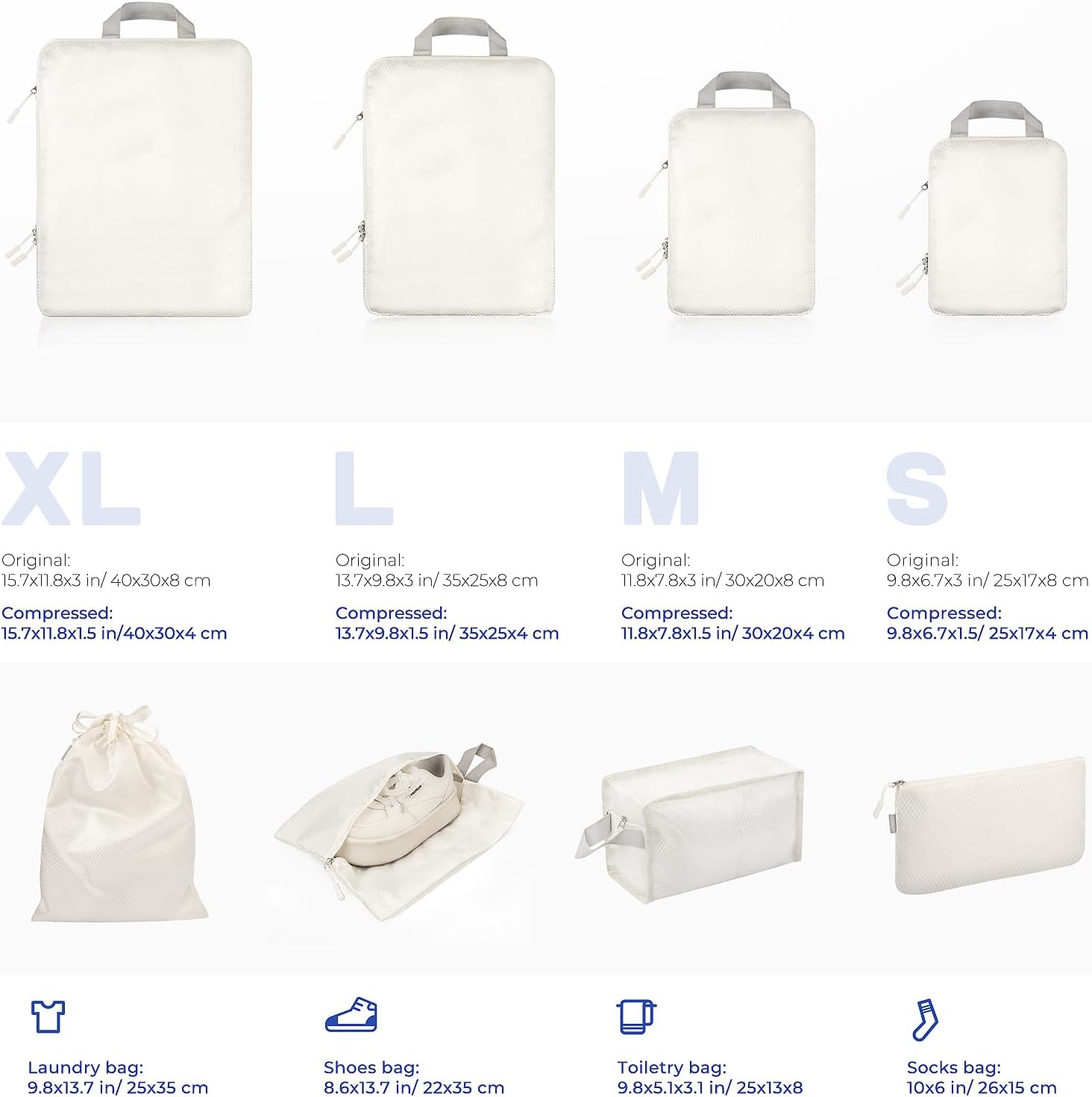 Introducing the YOOFAN Packing Cubes – the ultimate solution for stress-free and organized travel! Say goodbye to chaotic suitcases and hello to effortless packing with this 8-piece set of compression cubes in a stylish beige color.