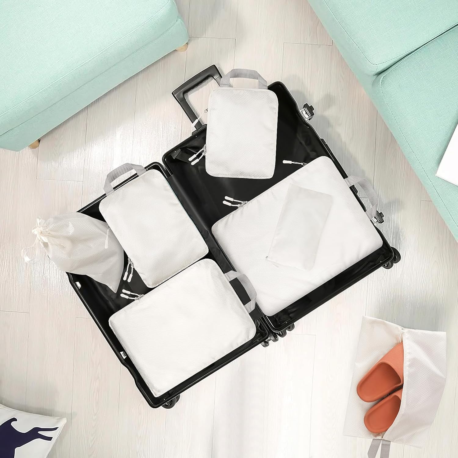 Keep your luggage neat and tidy with these versatile packing cubes that are designed to fit perfectly in your suitcase. The set includes different sizes to accommodate all your traveling essentials, from clothing and shoes to toiletries and accessories.